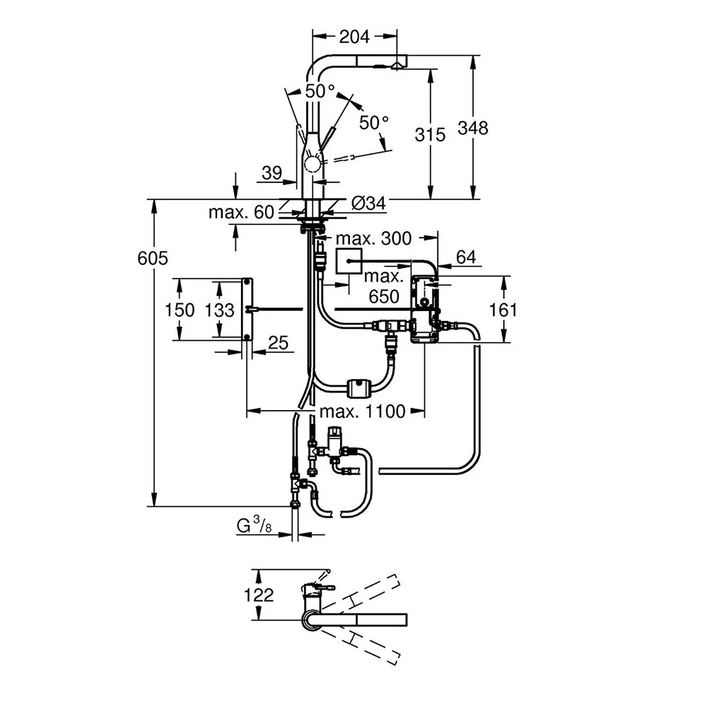 - Εκτροπέας: laminar spray/SpeedClean shower jet
