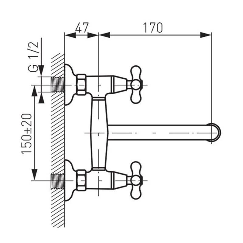 - G1/2 έκκεντρη σύνδεση απόσταση 150 ± 20 mm