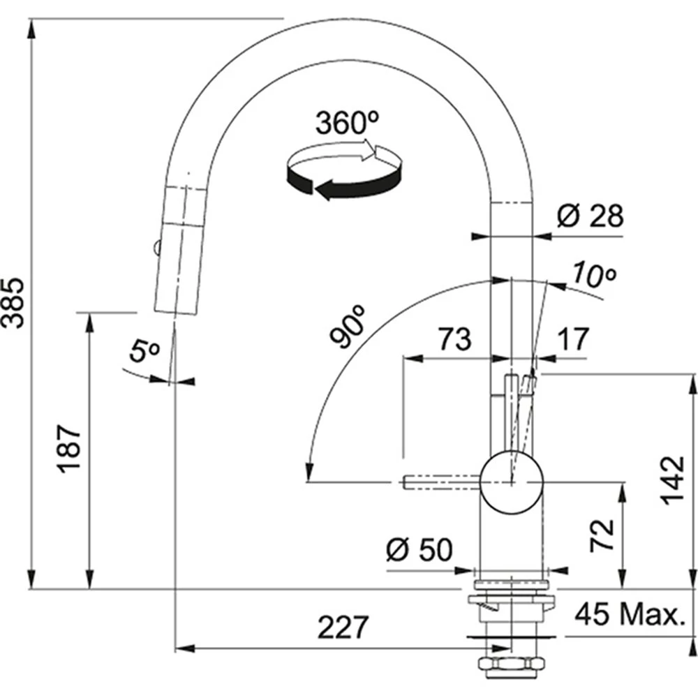 Μπαταρία κουζίνας FRANKE LINA SEMI PRO ντους χρωμέ – μαύρο 3156601035