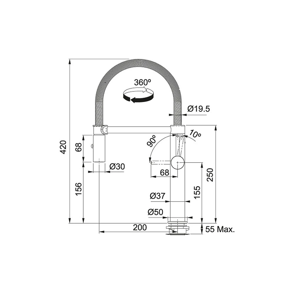 Μπαταρία νεροχύτη FRANKE Pescara Semi Pro L Ντους Inox 3153101010