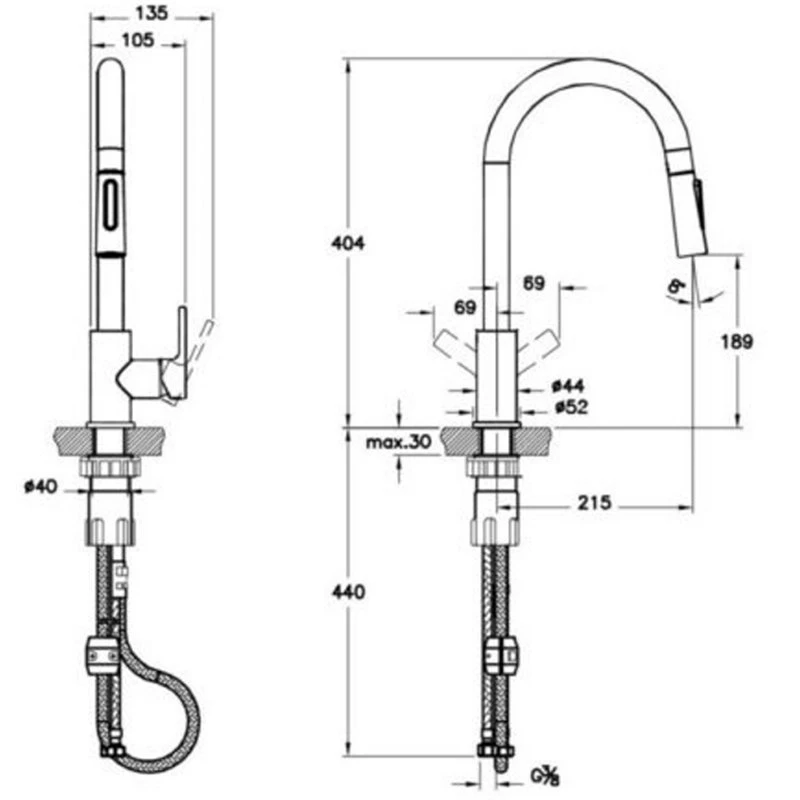 - Συνιστώμενη ελάχιστη πίεση : 0.5 – 10 bar