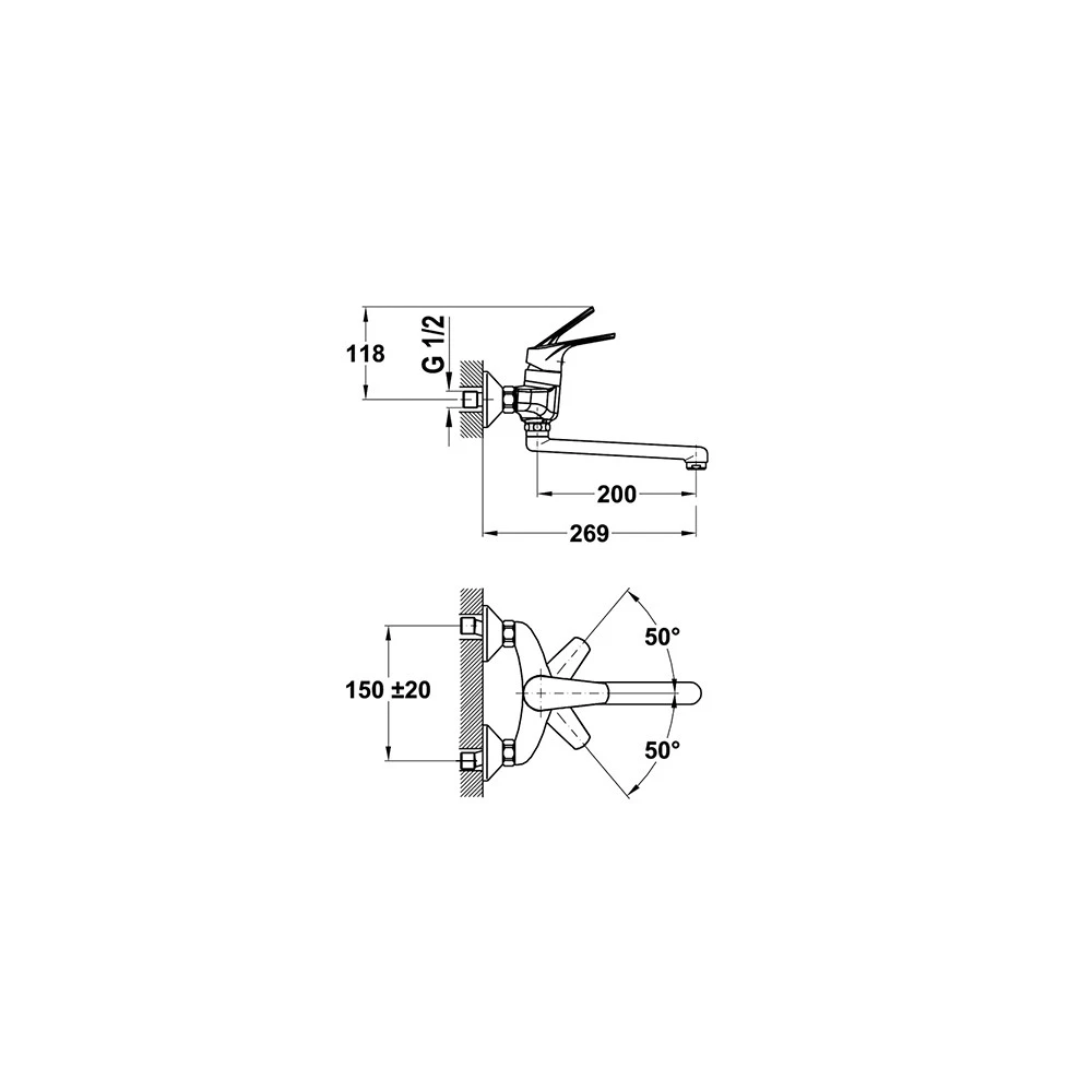 - Μπαταρία νεροχύτη τοίχου, αναμεικτική & περιστρεφόμενη