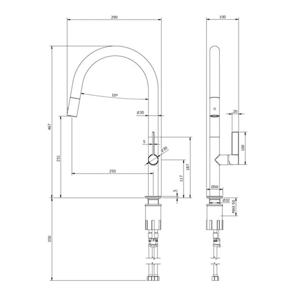 Μπαταρία κουζίνας FRANKE LINA SEMI PRO ντους χρωμέ – μαύρο 3156601035