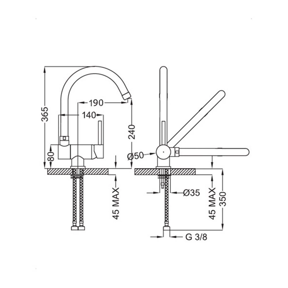 Μπαταρία νεροχύτου σπαστή OTTONE MELODA 06590 Χρωμέ
