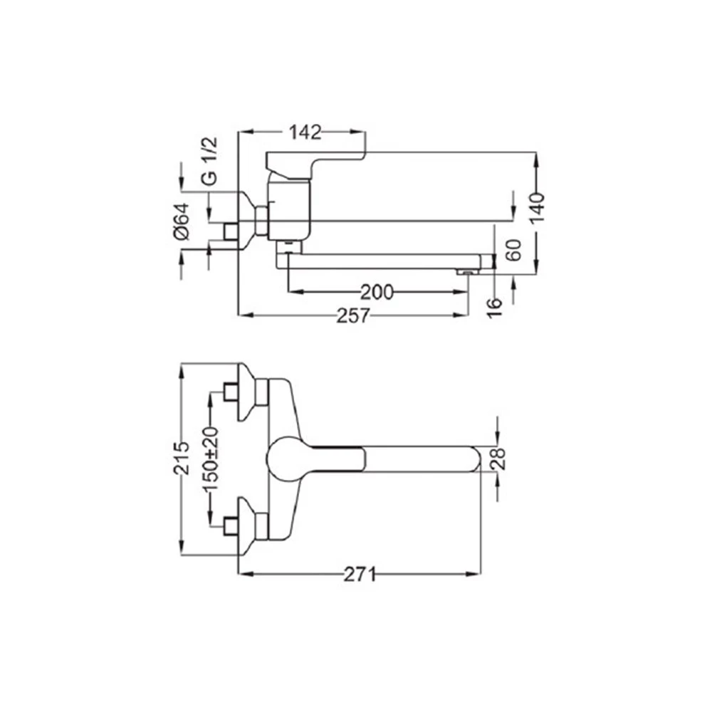 Μπαταρία νεροχύτου τοίχου OTTONE MELODA VERA 2V901 Χρωμέ
