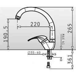 Μπαταρία κουζίνας YDRA 40mm αναμεικτική με ντους BORMANN BTW3100