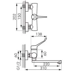 Μπαταρία κουζίνας τοίχου για ΑΜΕΑ FERRO PADWA MEDICO ANTISEPTIC BTPM5A
